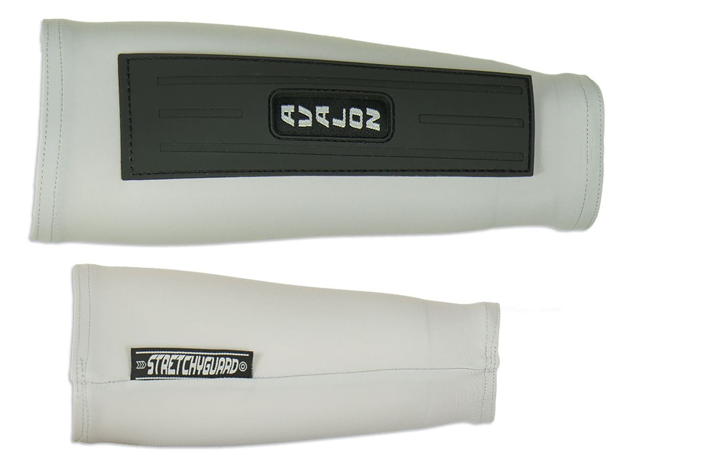 Sizes given are for circumference of the arm above the wrist (max), just below the elbow (max). The final measurement given is the length of the arm guard.