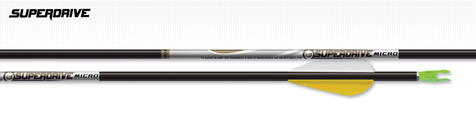 Easton’s new Superdrive Micro 4mm arrow is the latest addition to the popular Superdrive family of products. The Superdrive Micro is Easton’s highest performing all-carbon arrow designed for all-purpose outdoor tournament use from target to field to 3D. Engineered to provide the lightest grain-per-inch weights possible in a given spine range, the Superdrive Micro will maximize your shooting range and minimize your pin gaps, allowing for higher velocities both out of the bow and tighter gaps downrange. The Superdrive Micro is available in 11 spines from 325 to 950 providing a choice for the best archers across every division with an extremely tight .002” straightness spec. Accompanying the Superdrive is a full-line of glue-in target points, pin inserts, pin nocks, and direct-fit nocks. Sold in Dozen shaft configurations only. Components sold separately.